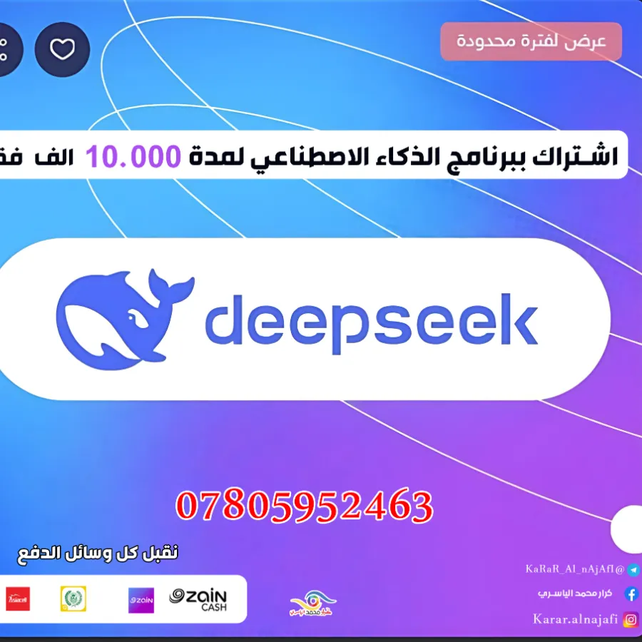 اشتراك حسابات deepseek للتواصل واتساب فقط 07805952463