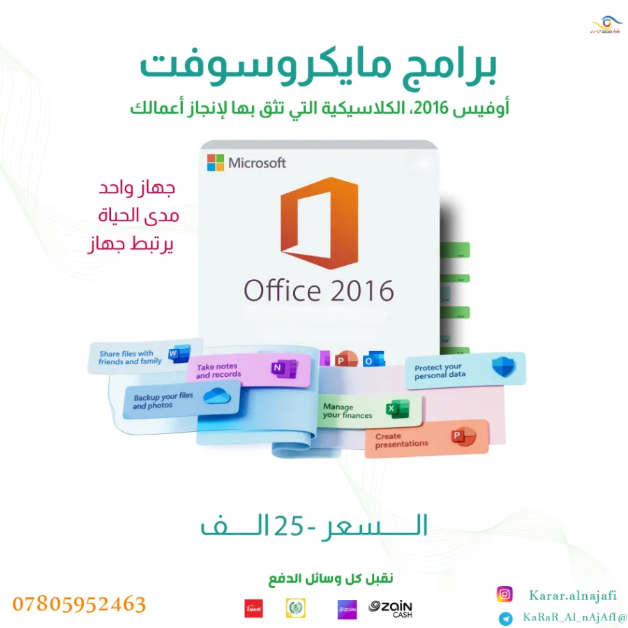 مايكرو سوفت 2016 للطلب واتساب فقط 07805952463